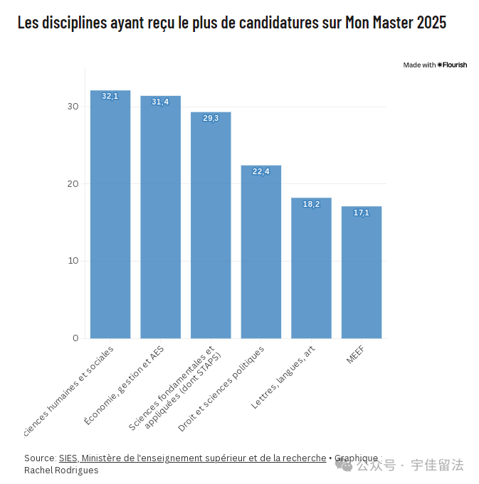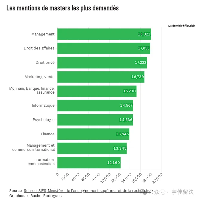 具体到专业,管理学硕士学位在2025年吸引了18021名申请者,接下来是两个法律专业:商法(17,855名申请者)和私法(17,222名申请者)。